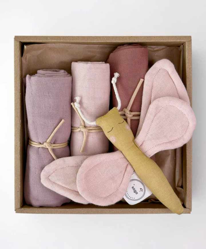 מארז לידה פרפר - גווני ורוד - מתנה מושלמת ליולדת ולתינוק | Saltwater סולט ווטר