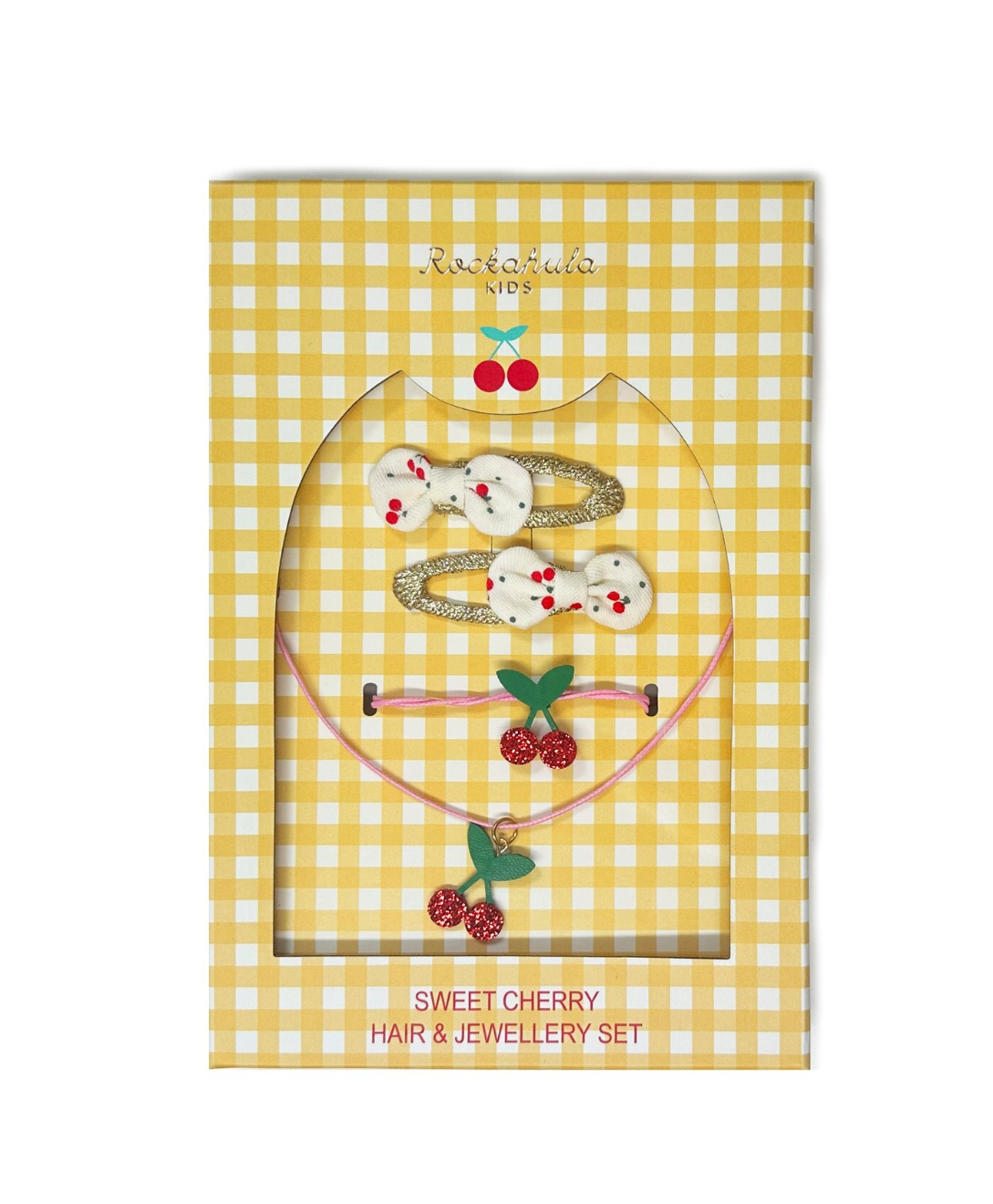 סט דובדבנים מתקתק הכולל שתי סיכות ראש מנצנצות עם פפיון מבד דובדבנים מתקתק, שרשרת וצמיד עם דובדבנים מנצנצים. מגיע בקופסת מתנה מתוקה להפליא!