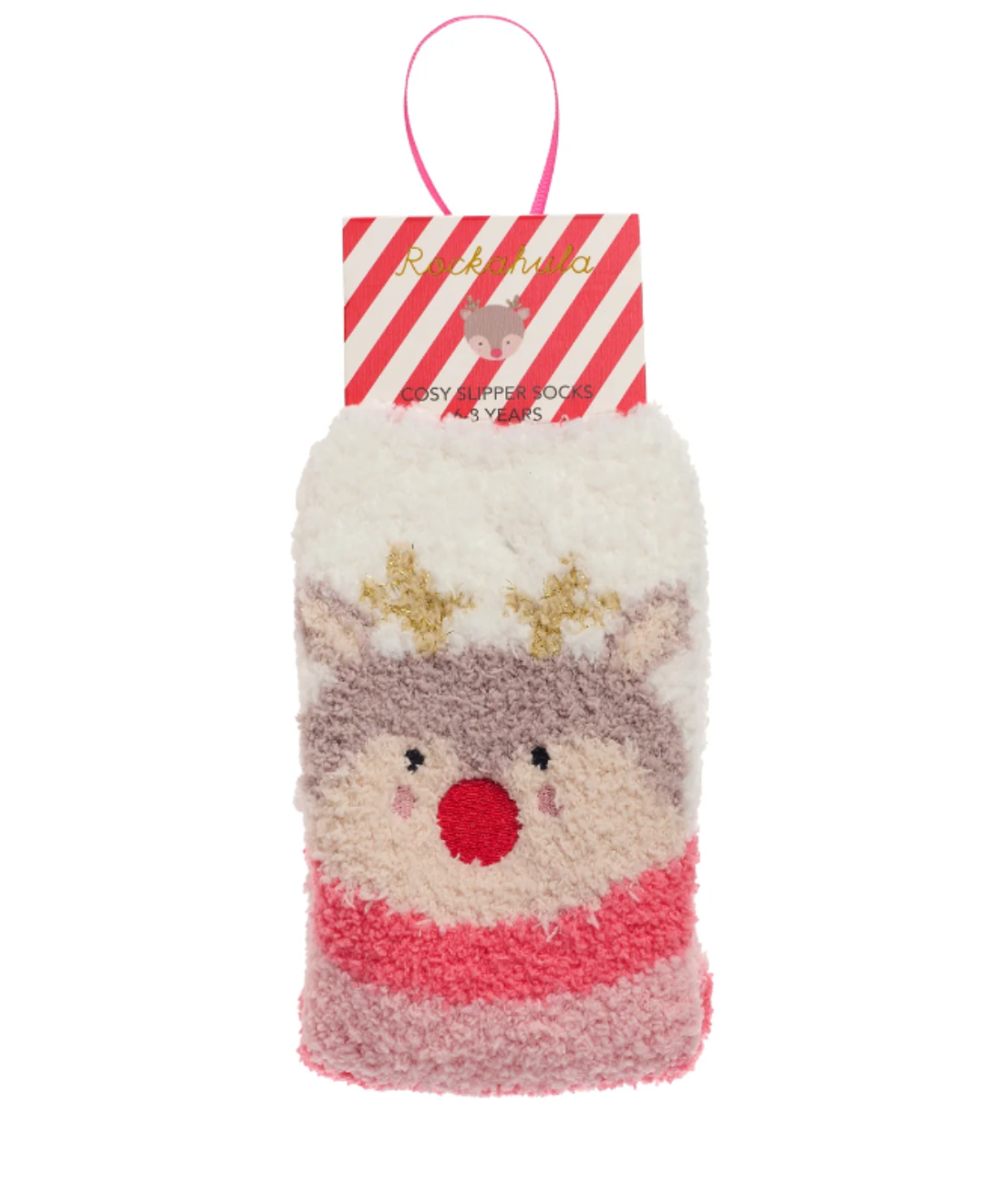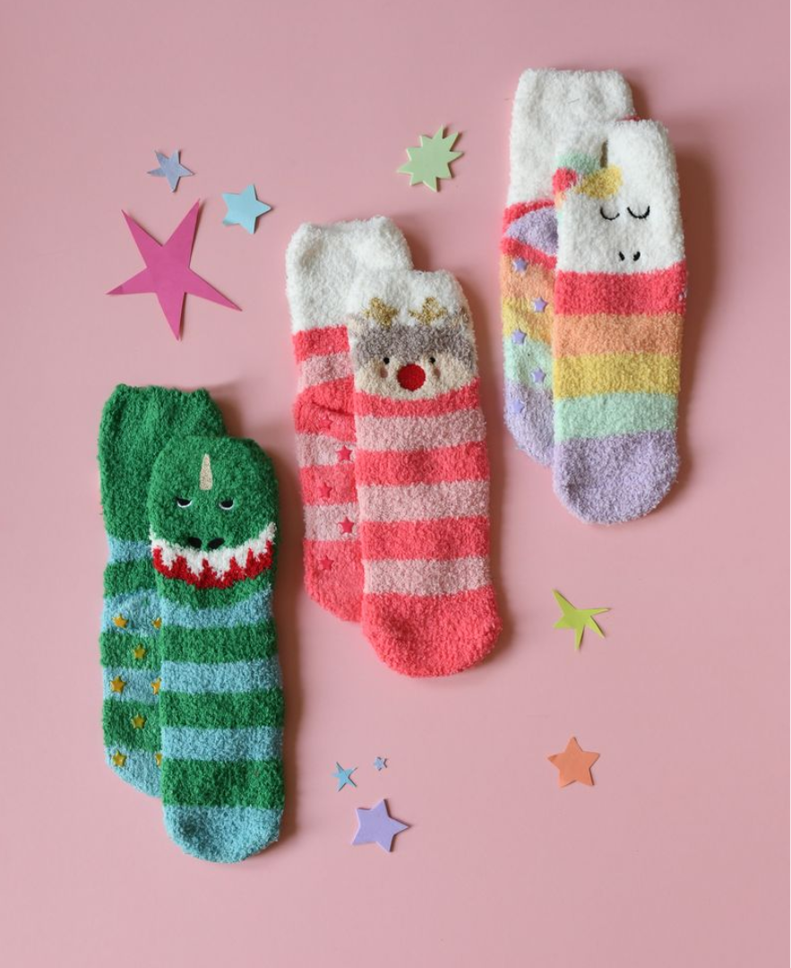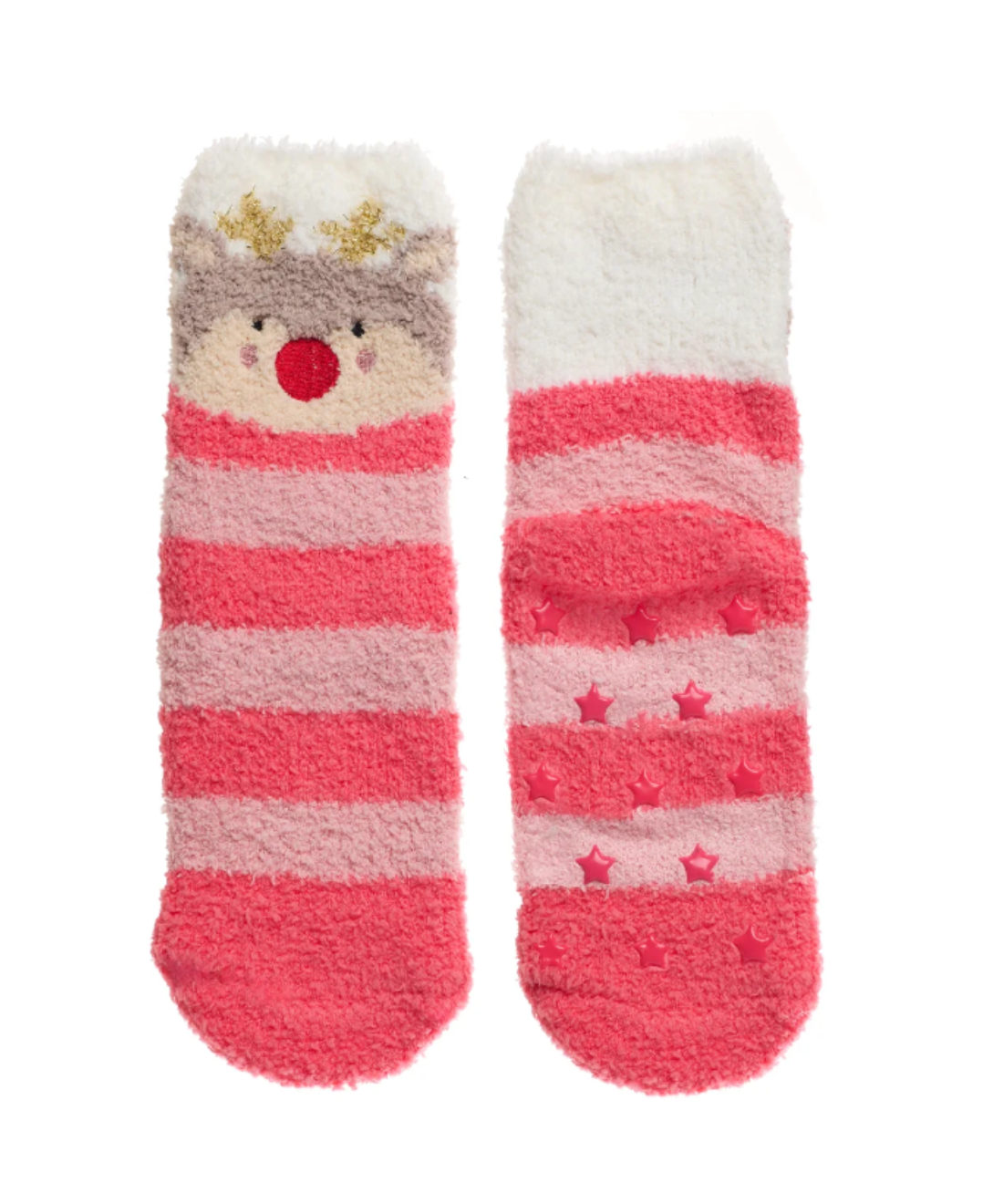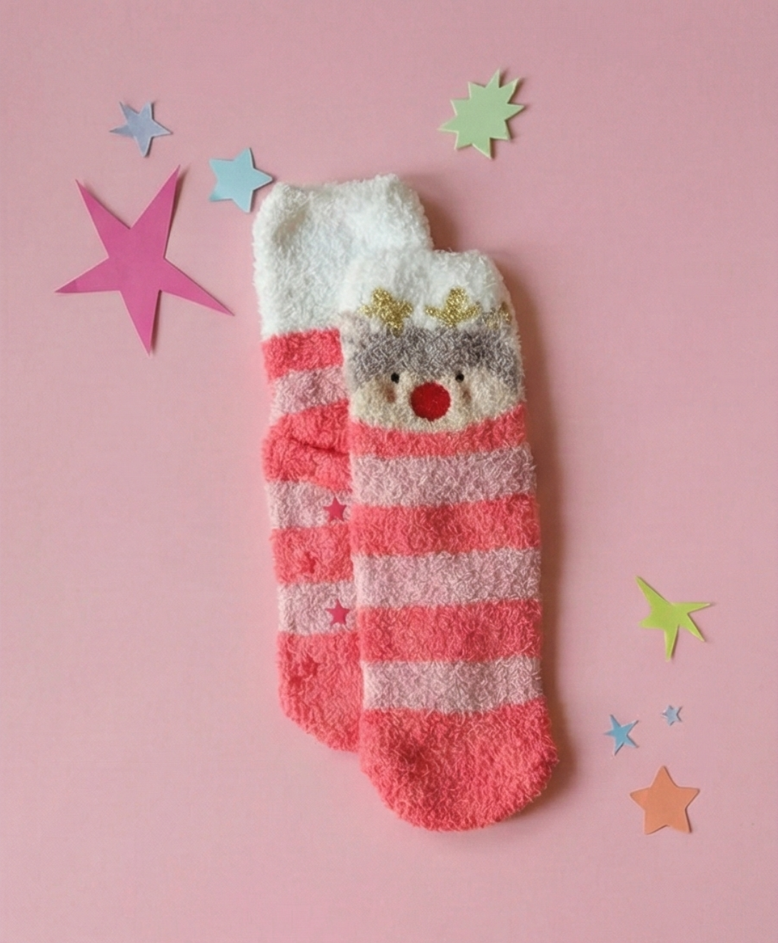 גרביים רכים ופרוותיים עם דגם במבי משמח, ורפידות נגד החלקה להליכה בטיחותית על רצפת פרקט.